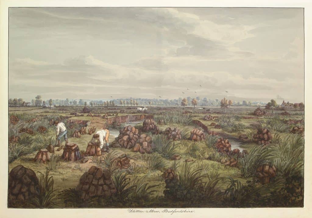 ‘Peat Cutting On Flitton Moor’ was painted by Thomas Fisher, a noted painter of Bedfordshire scenes, between 1812 and 1820.